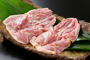 地鶏の王様と呼ばれるように、赤身を帯びたお肉に適度な香りの良い脂肪があり、しっかりとした歯応えが特徴で、噛めば噛むほどコクのある味がお口の中に広がります。